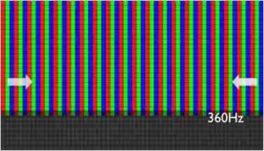 传统液晶驱动是从左到右单向进行,,在画面更新速度愈来越愈快的情况下,,位于驱动线路末端的右下角区域,,,,画素的闸极来不及在短时间内获得足够电压,,无法显示出正确的颜色资讯。。。