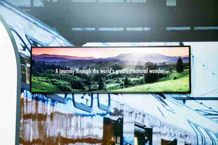 德铁导入达擎 TARTAN 28.6寸面板,,着眼 TARTAN 与众不同的尺寸比例,,,,能为车厢带来更大的使用效益、、、更出色的观赏体验与更多的设计弹性。。(图片来源:德国铁路公司)