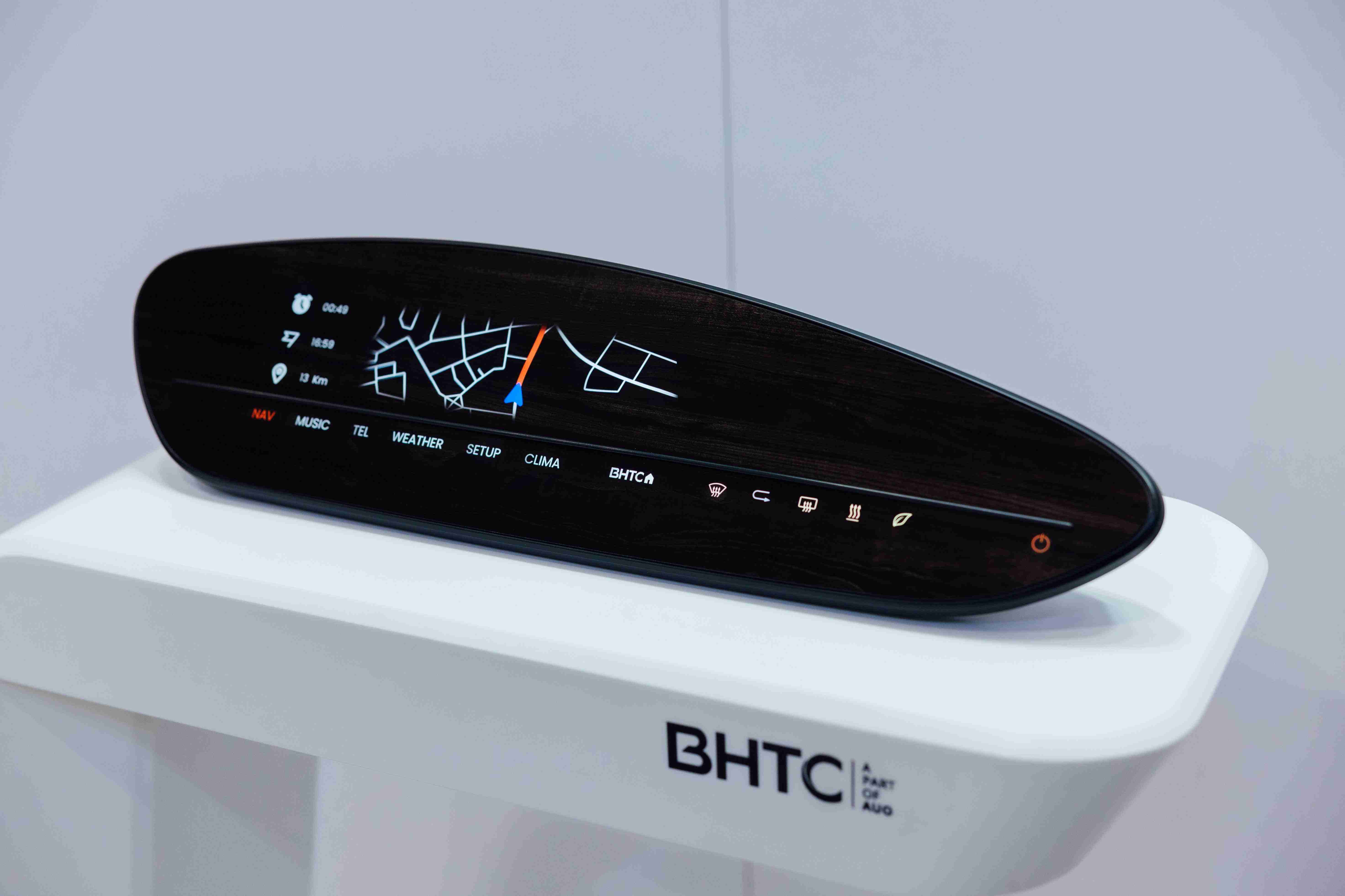 BHTC的木纹车用显示器(Display Behind Wood)将无缝木质表面与显示器结合后,,,可以融入车内设计中,,,提供驾驶优质的视觉效果,,,,加上其无边框的设计和亮度调控,,,,创造更优质的车内体验。。。