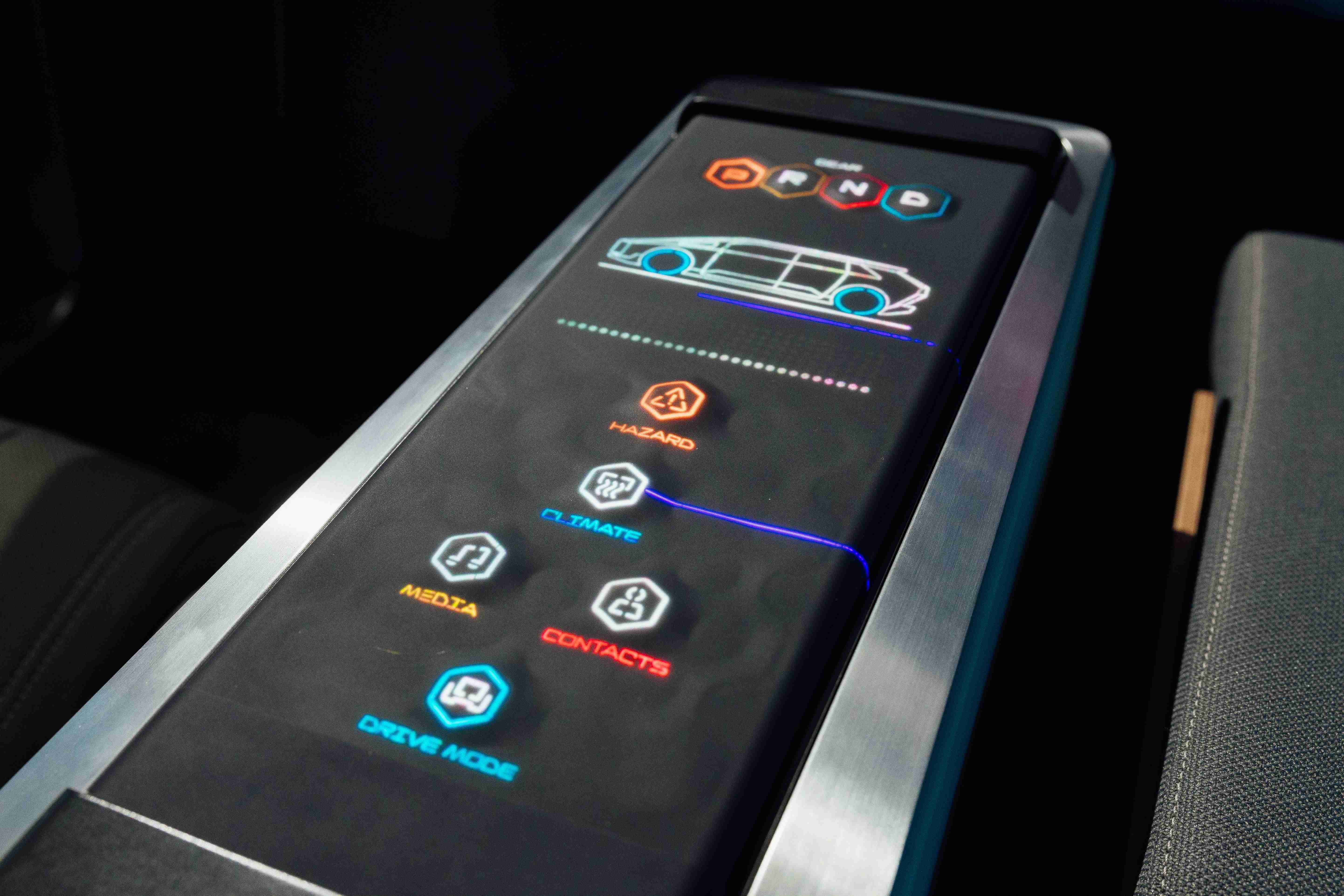 多变形态中控显示(Morphing Center Control)拥有动态变化的表面,,,,平时常态显示车辆功能,,,进一步操作时,,,,则会隆起成为3D 按钮,,,,并在触控时以震动回馈,,,,以精细的操作开创人机互动新境界。。。